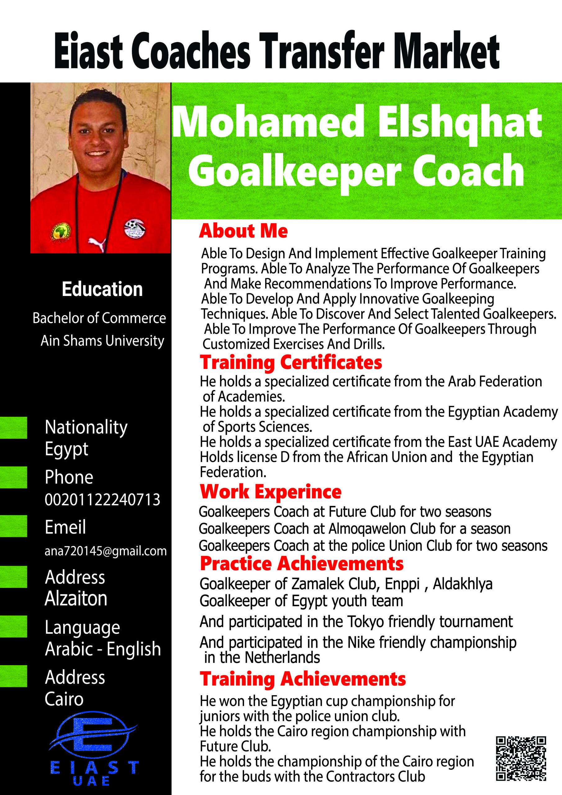 Mohamed Elshqhat Goalkeeper Coach